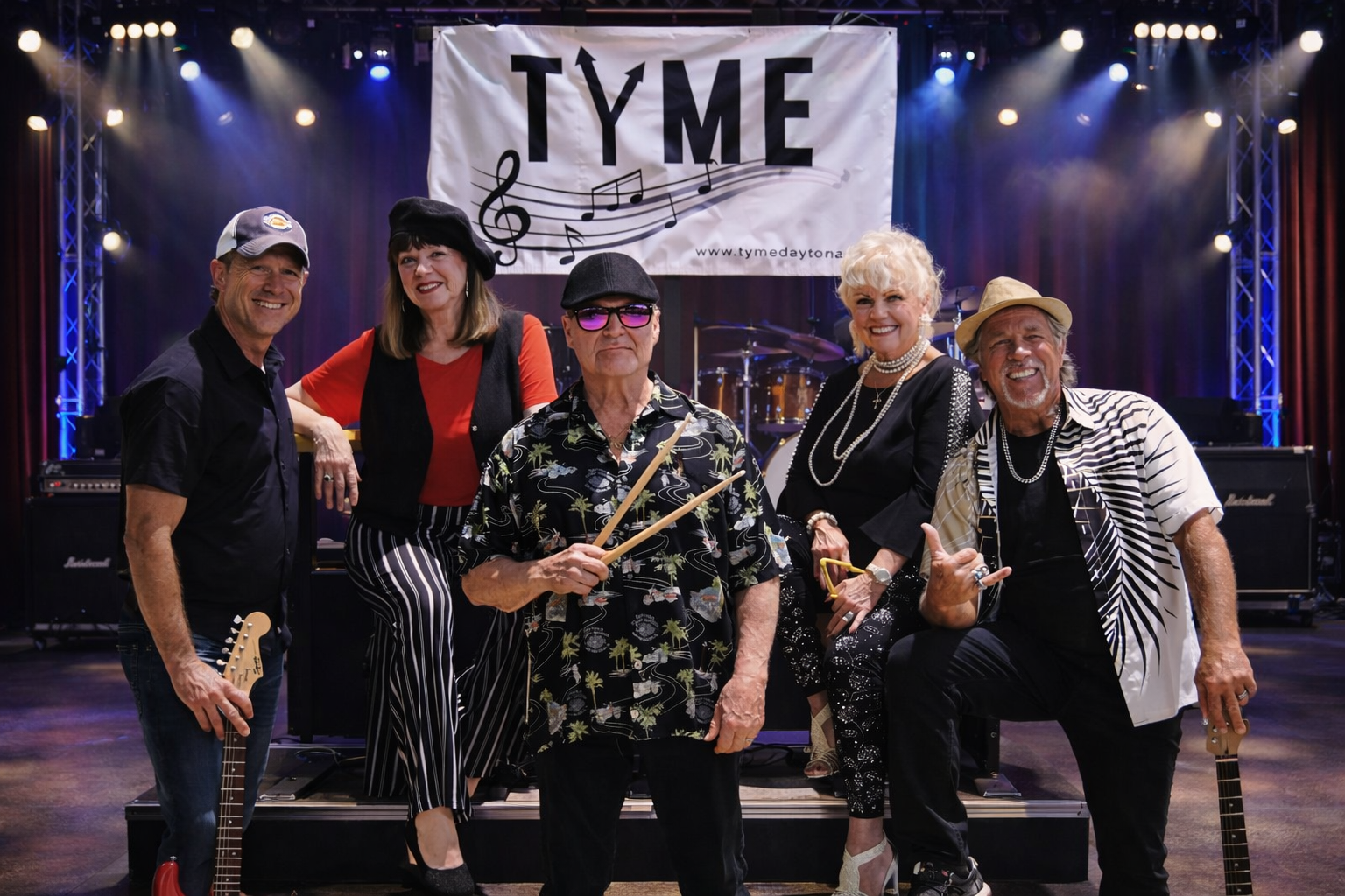 TYME is a high-energy Daytona-based party band bringing live music to audiences across the area. The band features Darlene Grigsby on lead vocals, RonRobinson on vocals and bass, Donn Deegan on drums, Brue Baker on guitar, and Jackie Lee on vocals and keys.